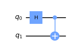 \[\frac{\sqrt{2}}{2} |00\rangle+\frac{\sqrt{2}}{2} |11\rangle\]