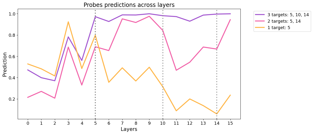 Trained probe at layer: 14, with metrics: {'loss': 0.4168366566300392, 'accuracy': 0.9166666666666666, 'precision': 0.8666666666666667, 'recall': 0.9285714285714286, 'f1_score': 0.896551724137931}.